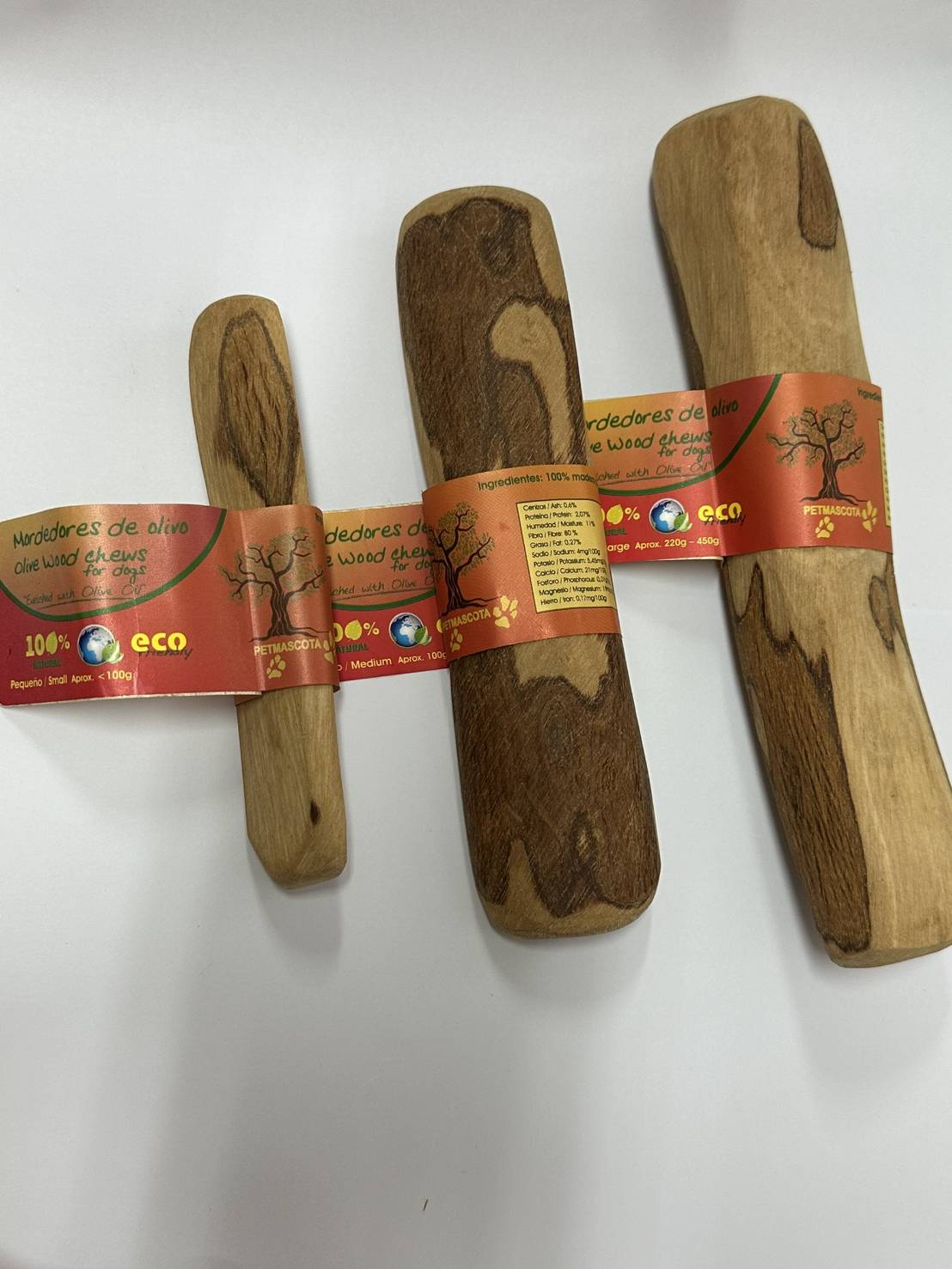 本產品為100%橄欖木,具有豐富的油脂與堅硬不易變形的特性,十分適合寵物磨牙使用。